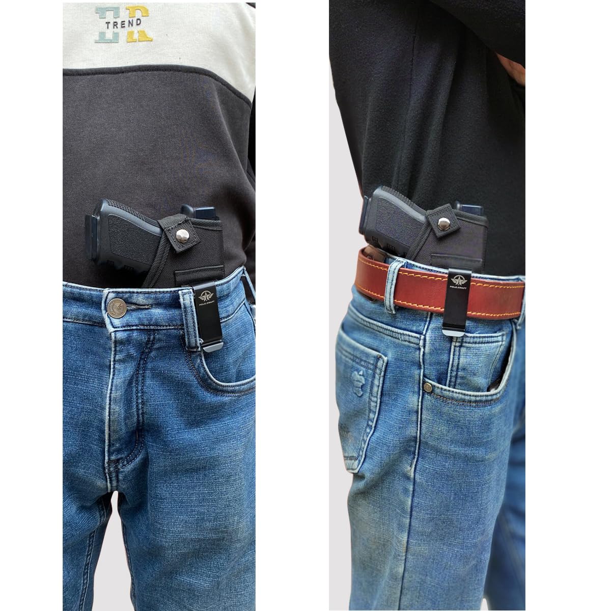 • ADJUSTABLE RIGHT AND LEFT HAND FREE SWITCHING: The belt clip ensures your holster stays still when you draw your gun no matter the situation. Gun holster can place on the outside or inside the waistband to wear for the left or right hand draw. The gun holster is made for right and left hand. There is a place for the clip on either side. You could wear it according to personal habits. Please note handguns with laser or flashlight attachments will not fit.