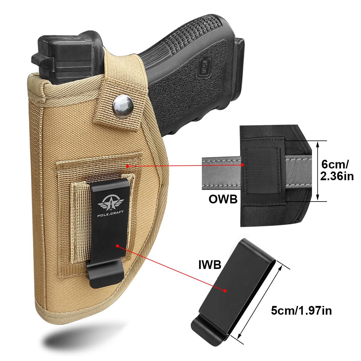 IWB/OWB Pistol Holsters Fit:Glock 19 17 26 43/G2C G3C/Sig P320/M&P 9mm 40/45/380 /Security 9/Hellcat (Tan, Right/Left Hand Draw (IWB/OWB))